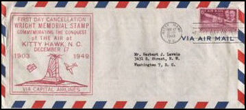 161.. | C45 | NIM |  | CM: C#: MTD: QTY: DSC: | Capital Airlines 2 Size 10; Airmail Envelope; Flown from Kill Devil Hills to Elizabeth City by helicopter, thence via Capitol Airlines; Signed by; First |