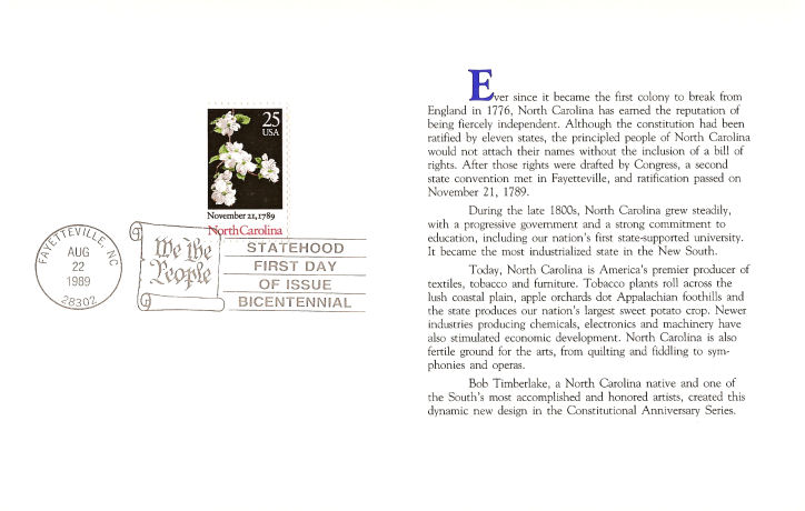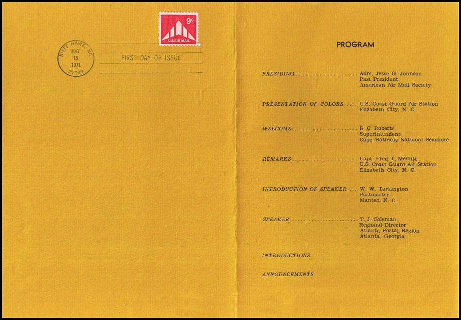 24 | 2347 | ESO |  | CM: C#: MTD: QTY: DSC: | United States Postal Service 6 Second Day Program - Raleigh, NC; Raleigh, NC; Ceremony Program |