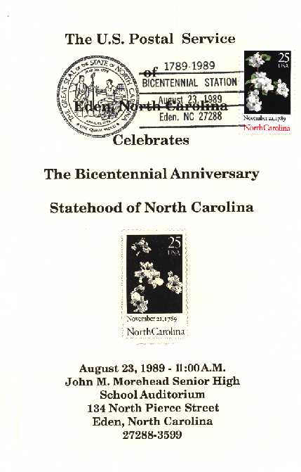 22.. | 2347 | ESO |  | CM: C#: MTD: QTY: DSC: | United States Postal Service 5 Second Day Program - Eden, NC; Eden, NC; Ceremony Program |