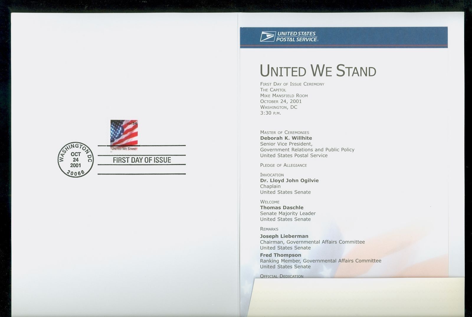 40.. | B7 | MC1 |  | CM: C#: MTD: QTY: DSC: | United States Postal Service 1 First Day Ceremony Program; Ceremony Program |