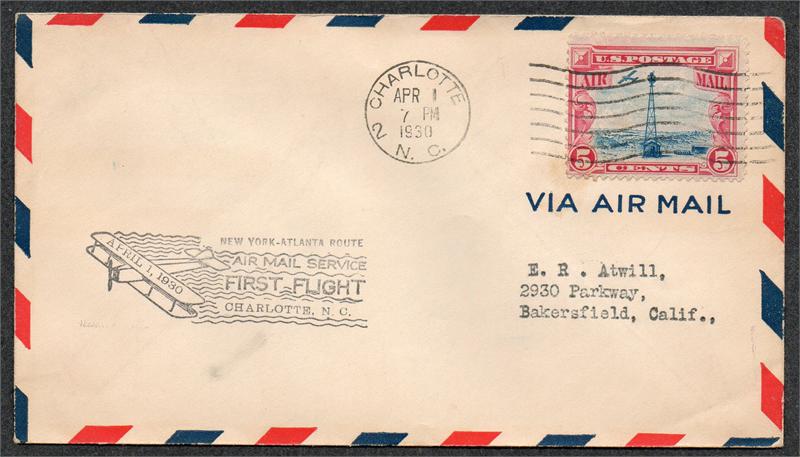 | 7 | | 19300401 | .jpg) | CM: C#: MTD: QTY: DSC: | Unknown 1 rsc UNK01; First Flight Charlotte, NC; New York - Atlanta Route; FFC |