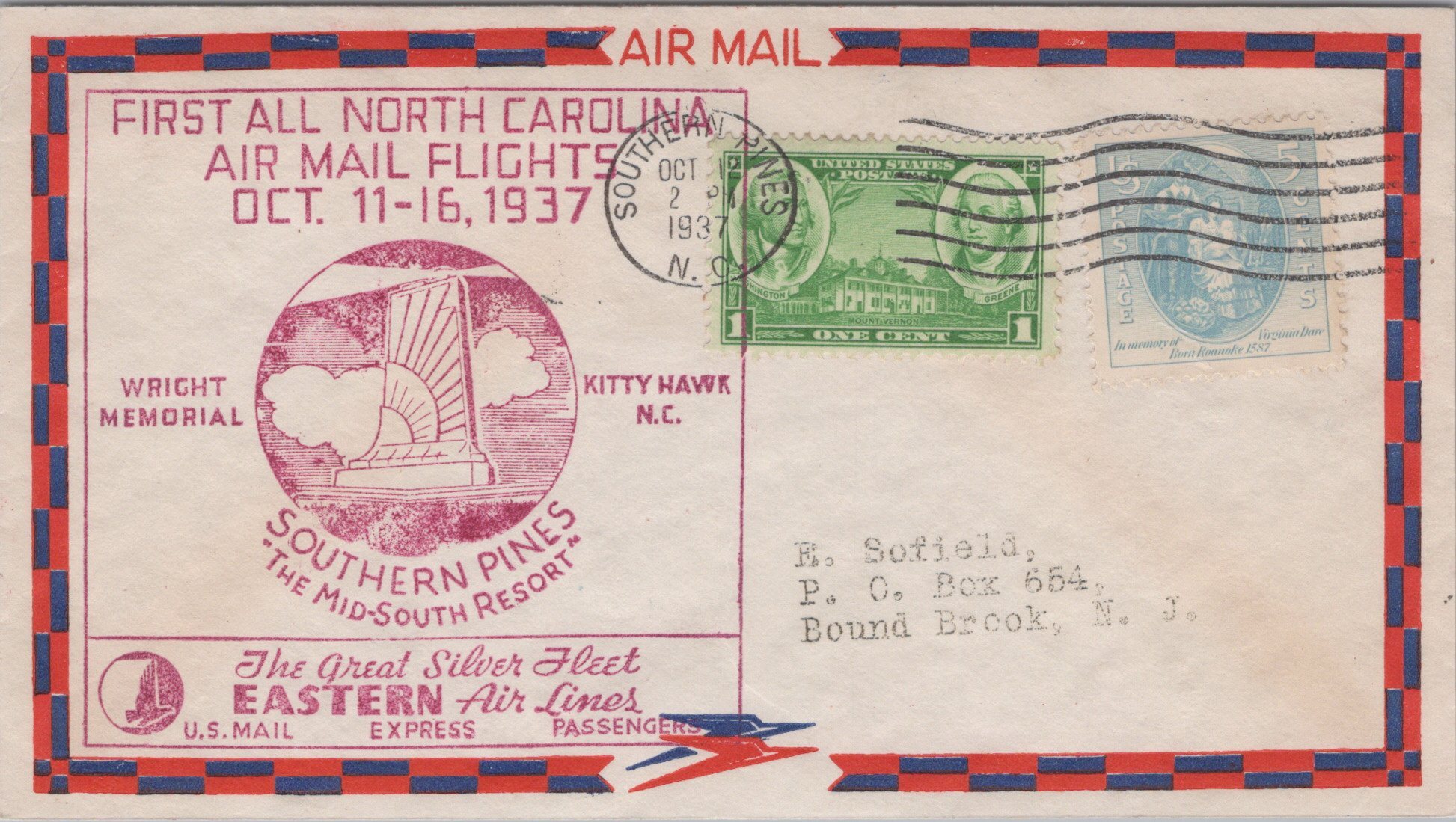 | 42 | | 19371012 |  | CM: C#: MTD: QTY: DSC: | Unknown 2 rsc First All NC AMF; Southern Pines, NC; magenta; Airmail envelope; FFC |