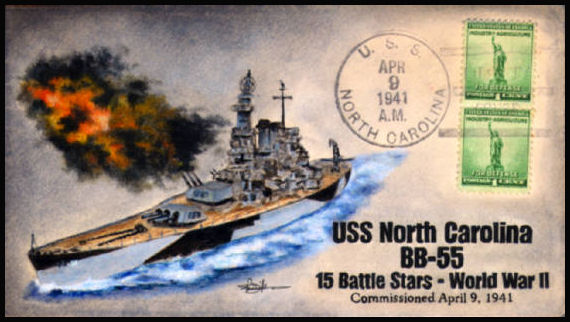 559 | | 19410409 |  | CM: C#: MTD: QTY: DSC: | Emrick Cachets 1 hdn hpd Commissioning of USS North Carolina; USS North Carolina Fleet Day Cover; c2011 |