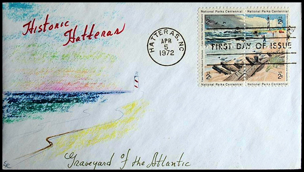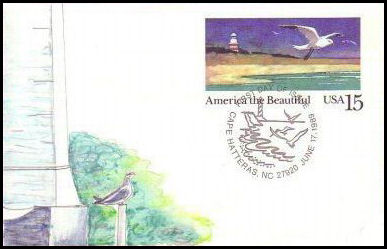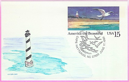 215 | 2347 | AO | ,_hdn_hpd,_1_made.jpg) | CM: C#: MTD: QTY: DSC: | Judith Fogt Cachets 1 hdn hpd 1 Depicting Bodie Island Light, Dare County, NC |