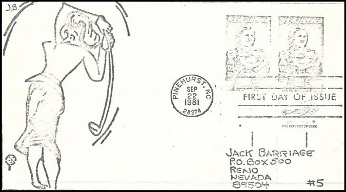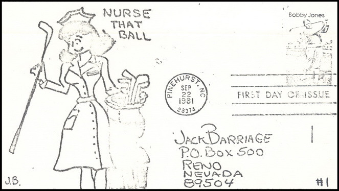 56.. | 1932 | |  | CM: C#: MTD: QTY: DSC: | Barriage, Jack 2 hdn hcd 1 Private cachet; Lady swinging club; Jack Barriage |