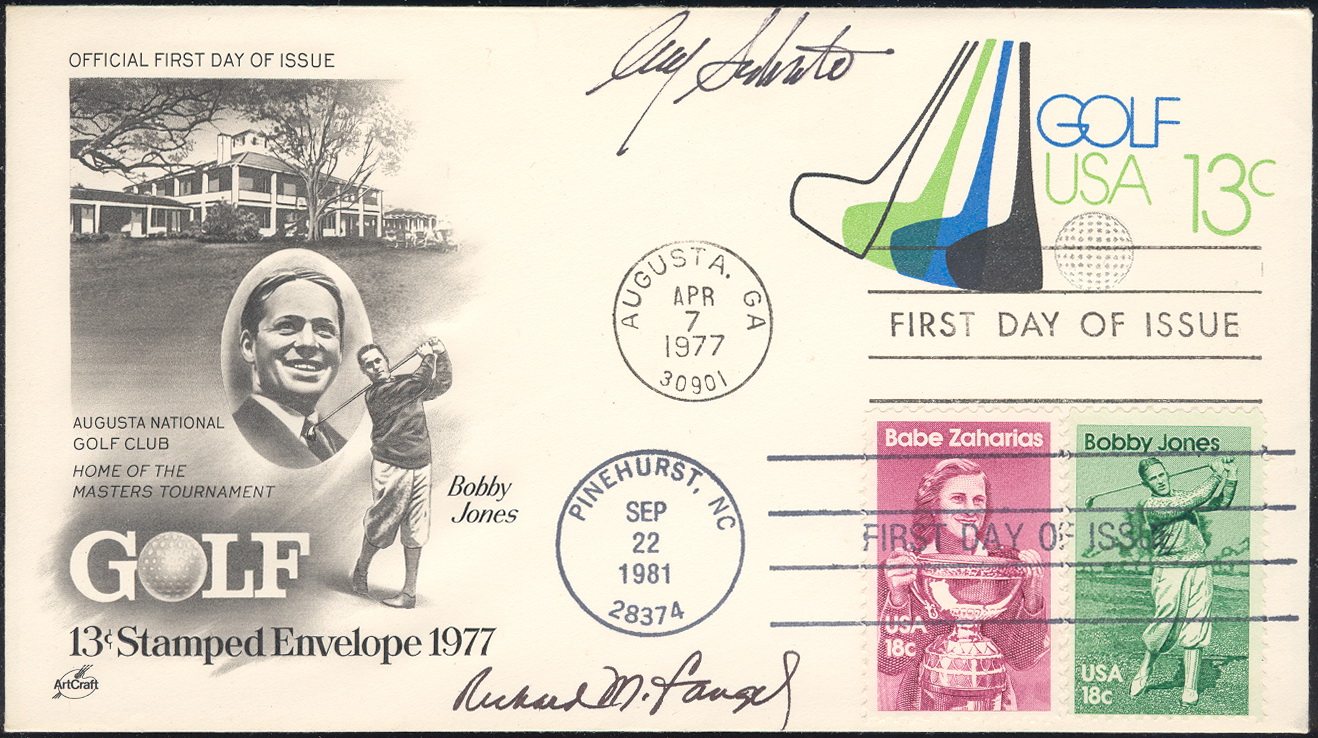 86.. | 1933 | | .jpg) | CM: C#: MTD: QTY: DSC: | Sports Covers Club of America 1 1 1970 Augusta Masters Tournament Cachet; brown, green; Serviced by Tewksbury |