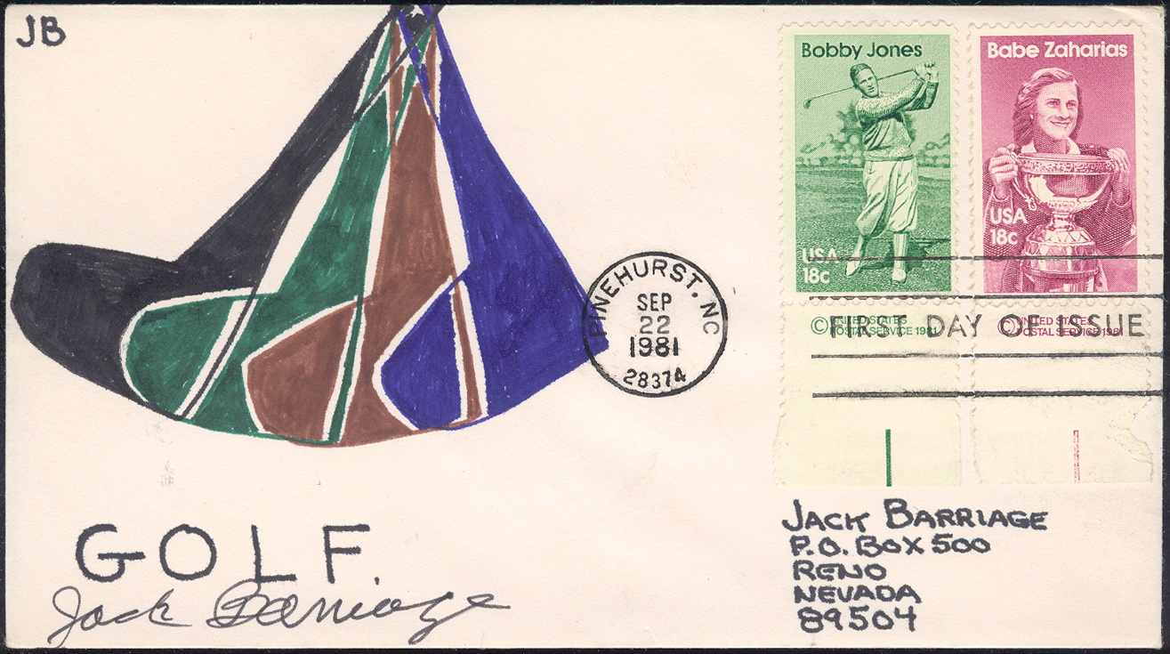 94 | 1933 | |  | CM: C#: MTD: QTY: DSC: | Barriage, Jack 1 hdn hcd 1 Private cachet; Golf Clubs; Jack Barriage |