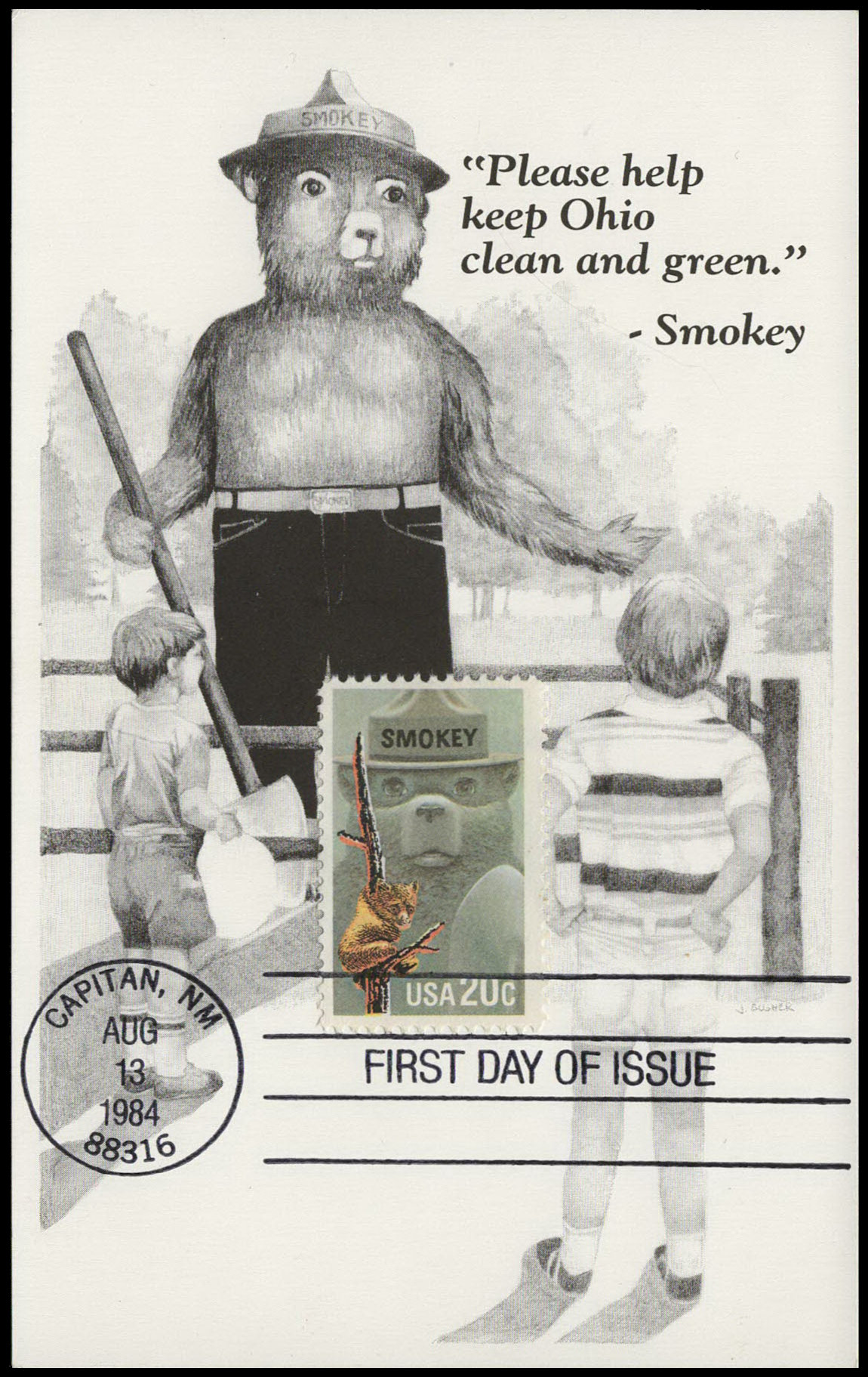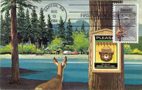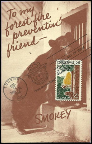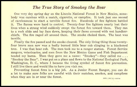 17 | 1122 | NIMPC |  | CM: C#: MTD: QTY: DSC: | Unknown 19 Post Card; paragraphs on back - 'The True Story of Smokey the Bear'; bottom right, marked 'GPO: 1957 O 435756 |