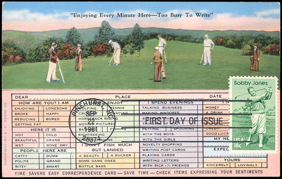 38 | 1932 | PPC |  | CM: C#: MTD: QTY: DSC: | Aerial Photography Services, Inc. 4 Charlotte, NC; 22070-D; World Golf Hall of Fame; Bobby Jones 10-ft statue; PPC |