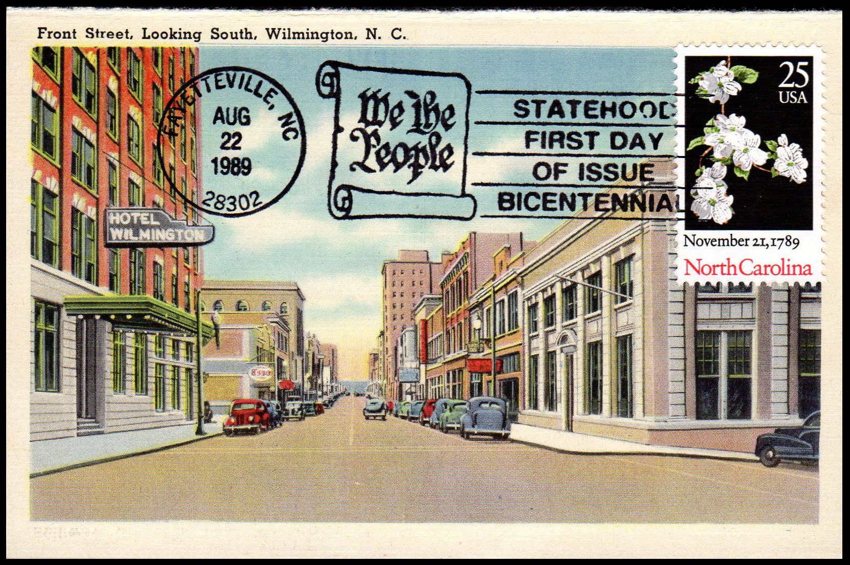 183 | 2347 | PPC |  | CM: C#: MTD: QTY: DSC: | Unknown 32 Front Street, Looking South, Wilmington, N.C.; on paper stock from fold-out card pack; no markings; PPC |