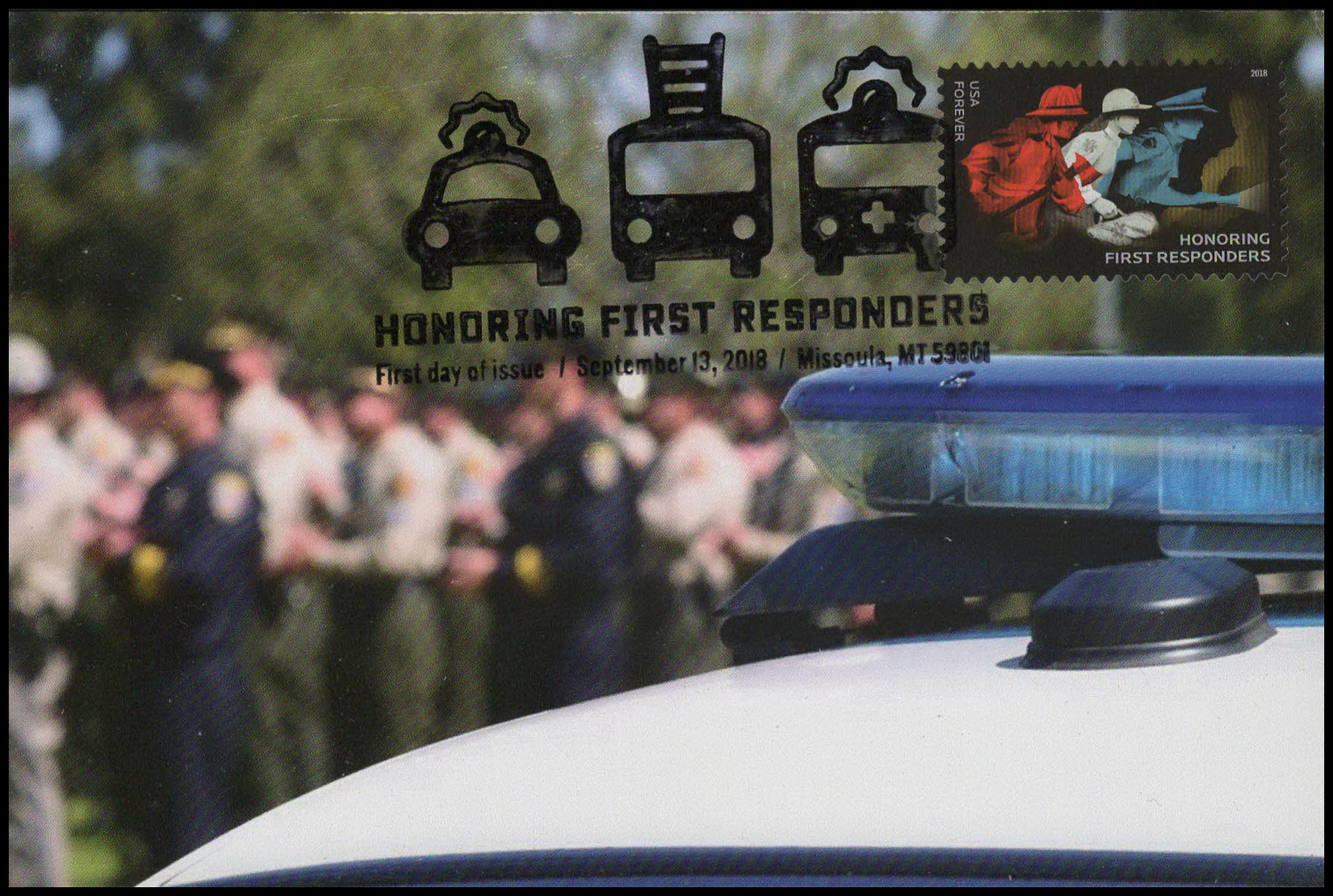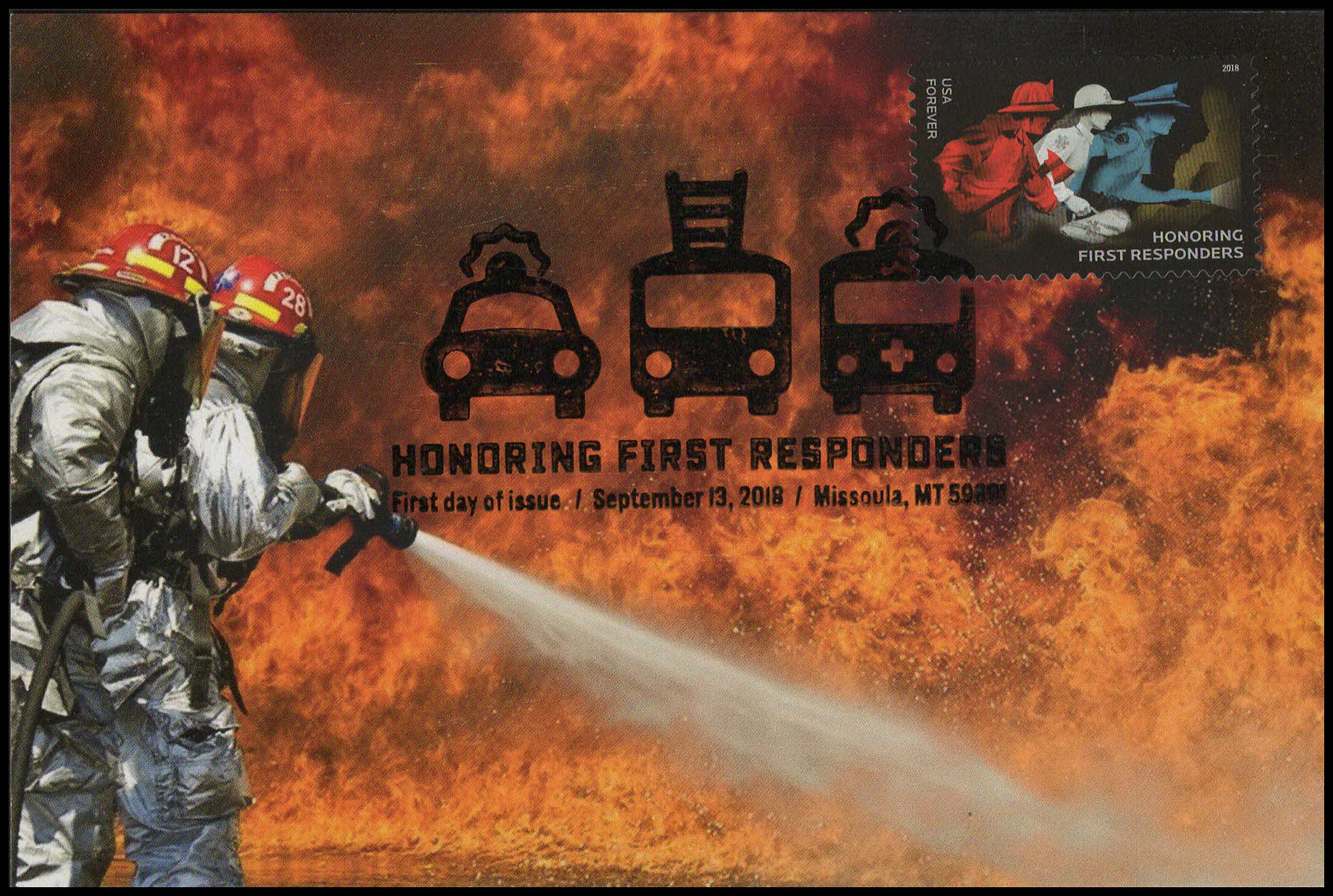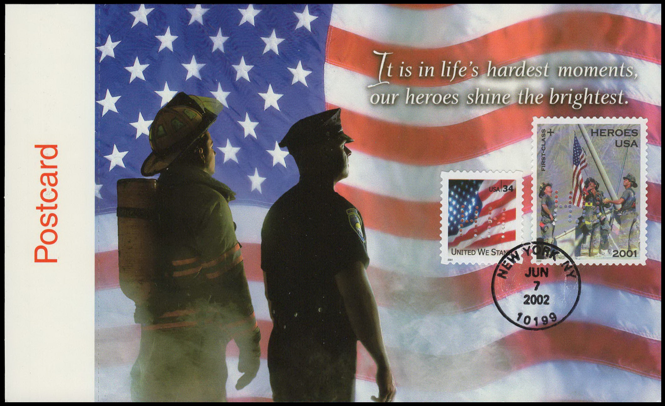 235 | B2 | PPC |  | CM: C#: MTD: QTY: DSC: | American Greetings Corporation 3 10 Flag behind Cop & Firefighter; Serviced by HN Local Post; B2 & 3459 with HN imperf |