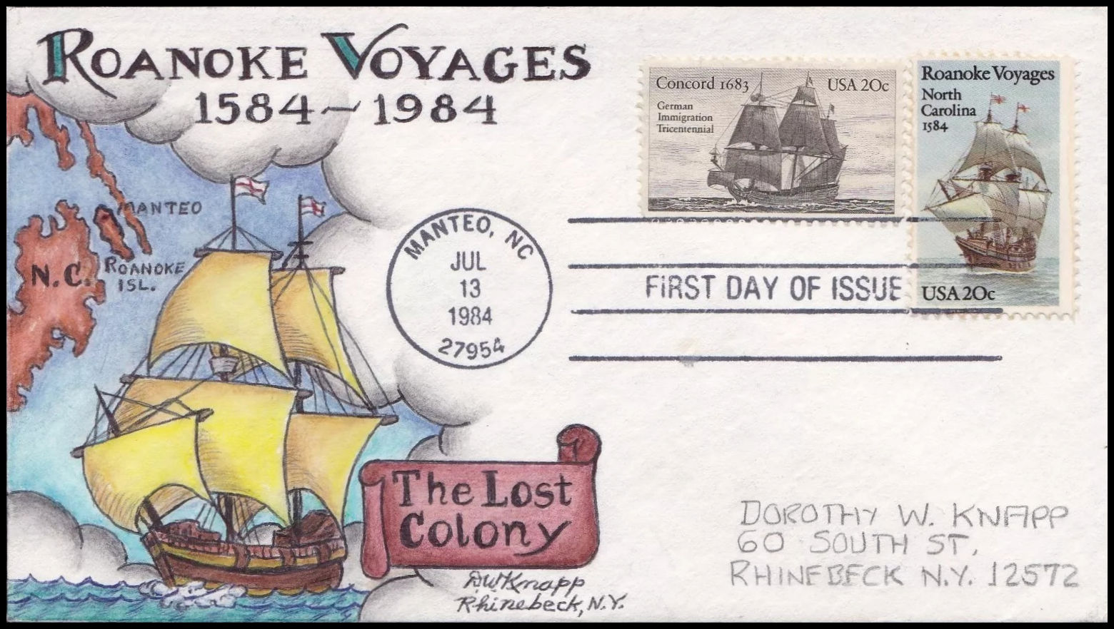black; white envelope; UO Manteo, NC in red & Wanchese, NC in red; Combo #796; (TMW); Unofficial