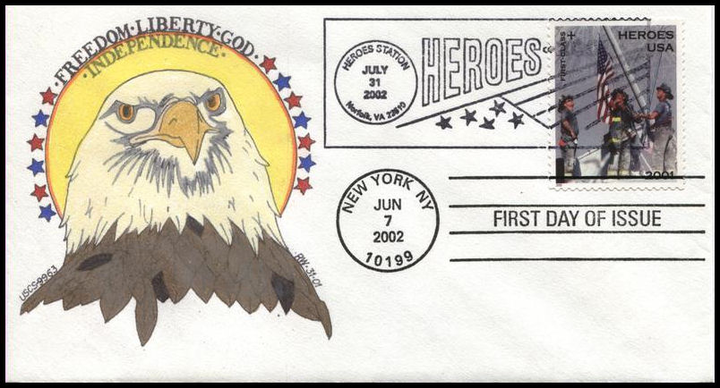 {3549b} Firemen; U.S. Flag background; Combo 2264