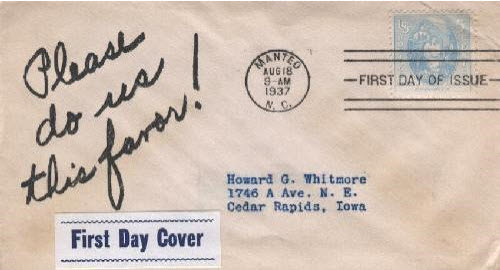 3068.. | UX85 | |  | CM: C#: MTD: QTY: DSC: | Richard Post Cachets 1 LWC UO Cowpens, SC |