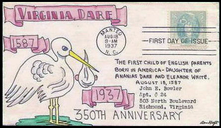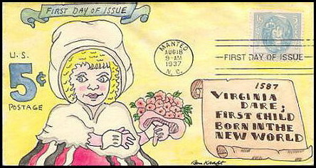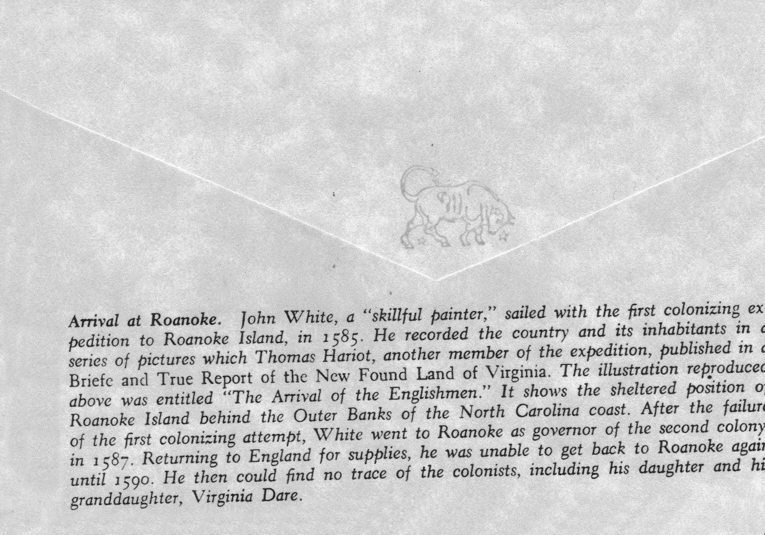40.. | 796 | P057f |  | CM: C#: MTD: QTY: DSC: | Postmaster General Cachets 1 black, Baptism of Virginia Dare |