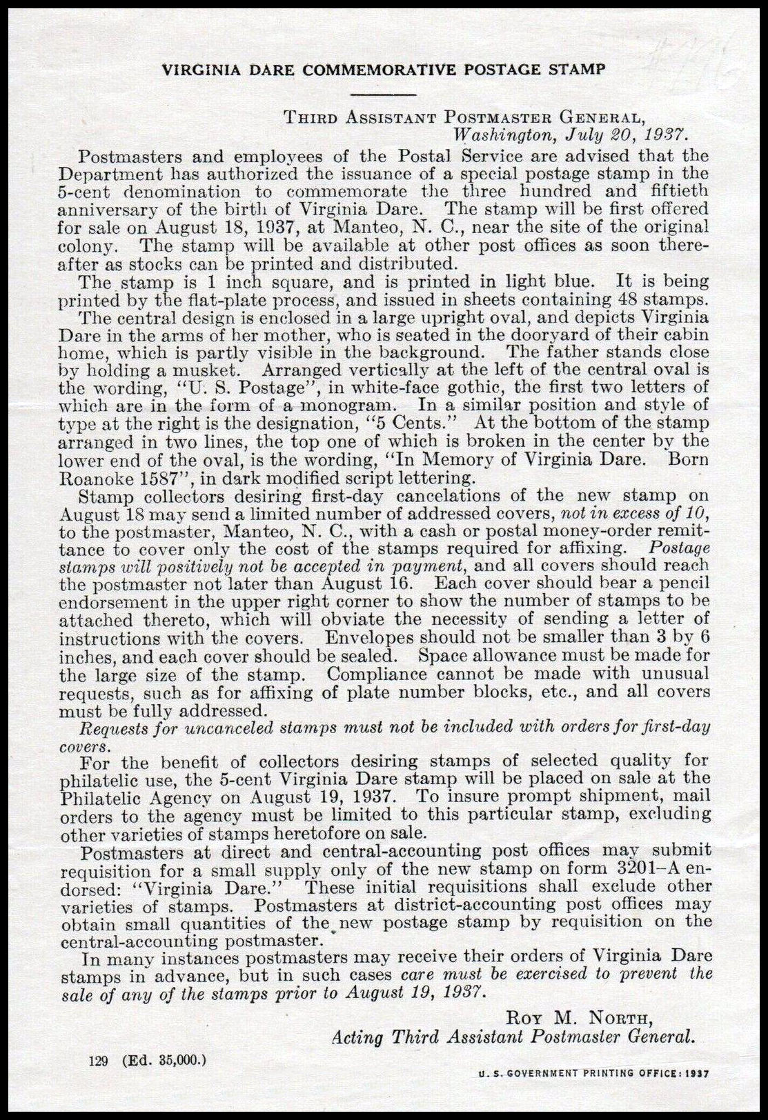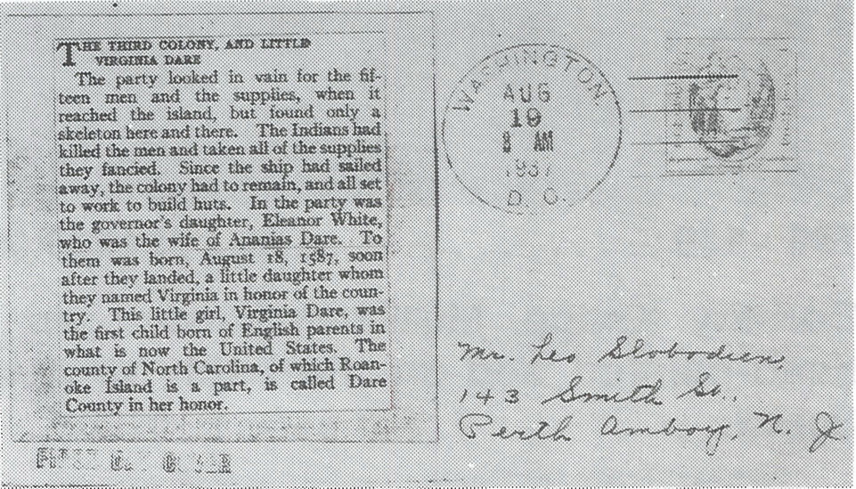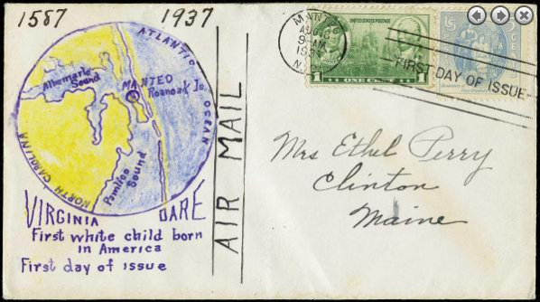 44.. | 796 | P057j |  | CM: C#: MTD: QTY: DSC: | Postmaster General Cachets 1 black, Virginia Dare Monument |