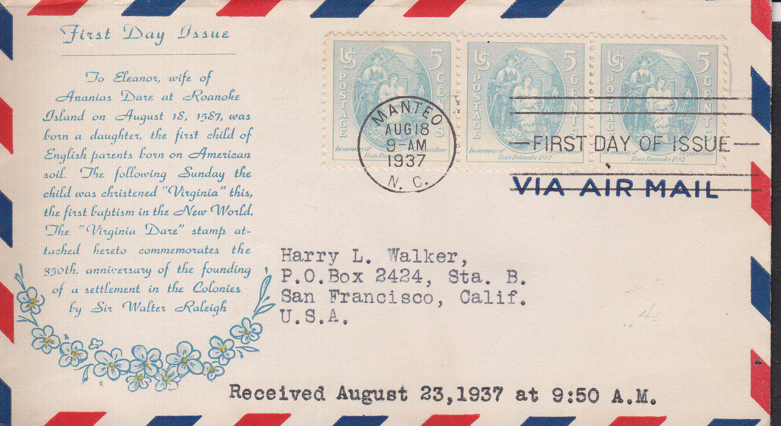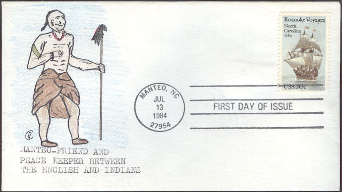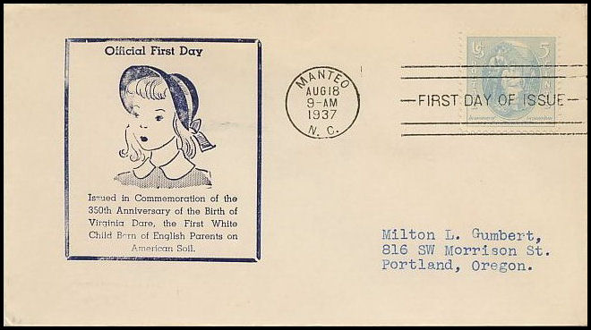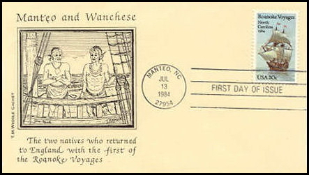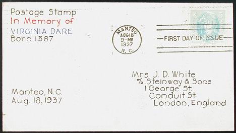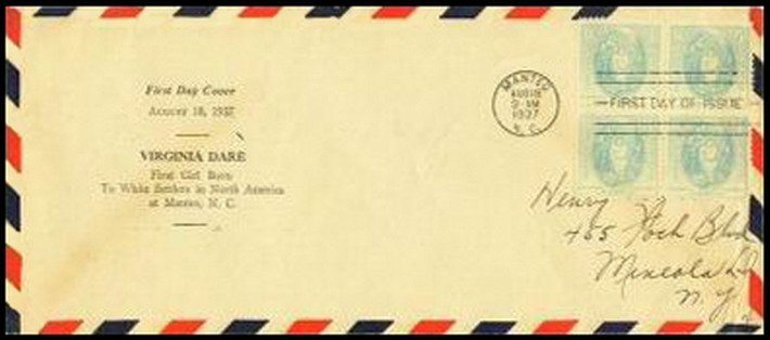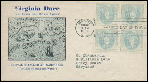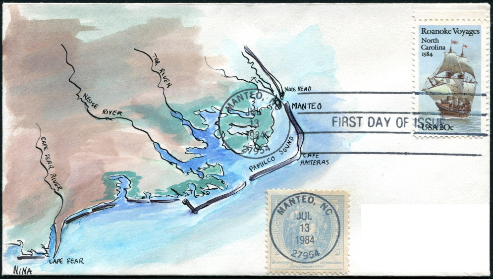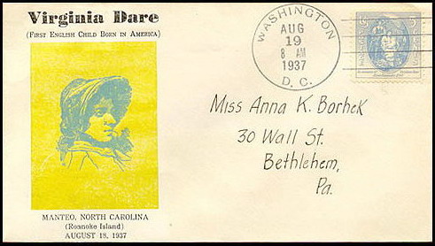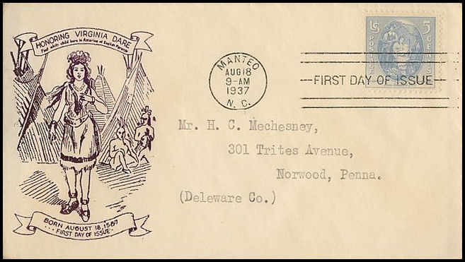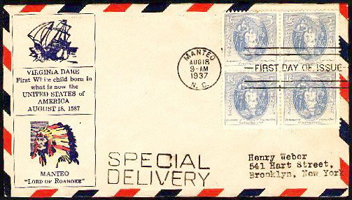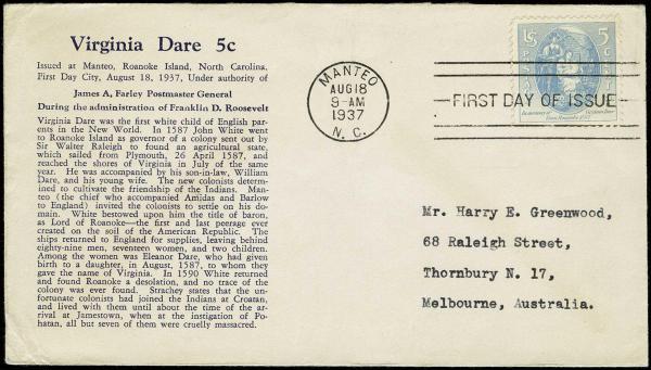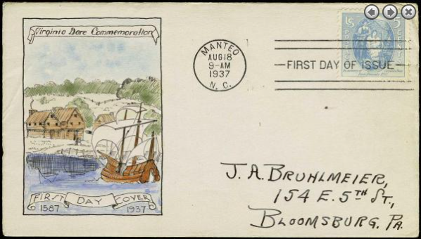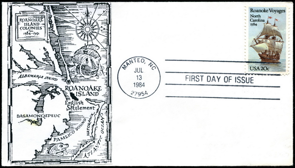 35.. | 796 | P057a |  | CM: C#: MTD: QTY: DSC: | Postmaster General Cachets 1 black, Baptism of Manteo |