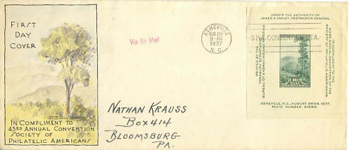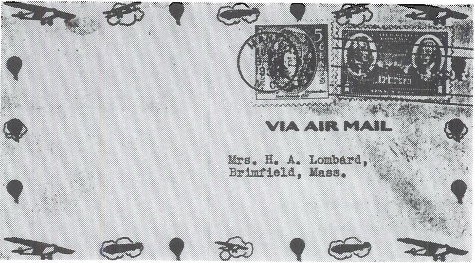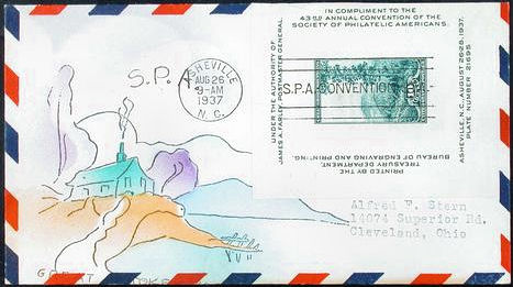 6.. | 796 | P015 |  | CM: C#: MTD: QTY: DSC: | Espenshade, William H. 1 blue, added yellow to flowers; Airmail border |
