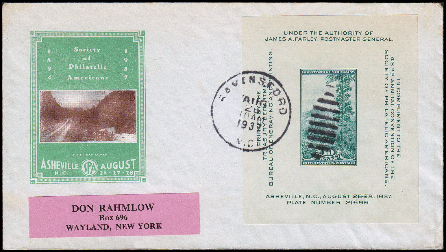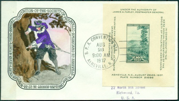 19.. | 796 | P043a |  | CM: C#: MTD: QTY: DSC: | Historic Art Cachets 1 black, UO Dare, VA; Unofficial |