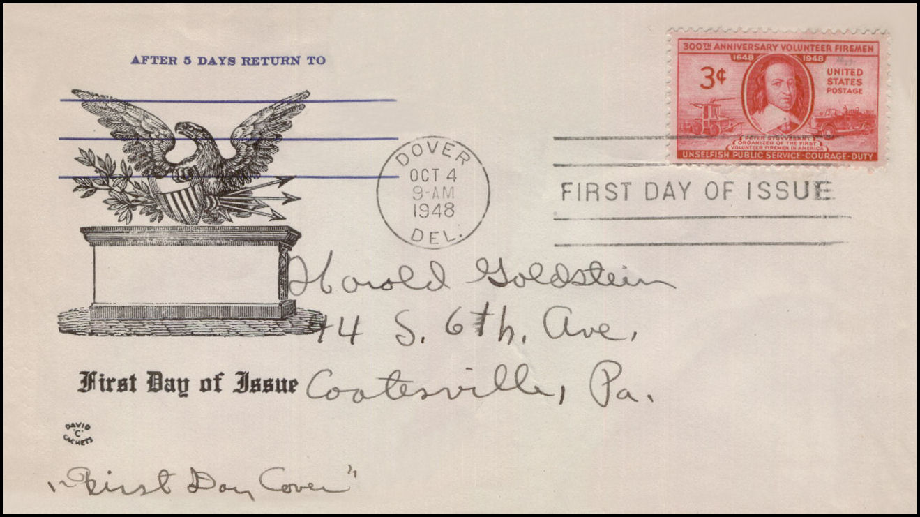 40.. | 796 | P057g |  | CM: C#: MTD: QTY: DSC: | Postmaster General Cachets 1 black, Wathing for the return |