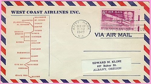 1040 | C45 | NIMGP |  | CM: C#: MTD: QTY: DSC: | West Coast Airlines 1 Advertising airmail envelope; blue orange; GP |