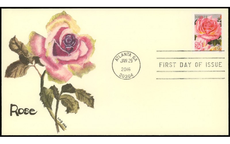 Original artwork on 140 lb cold pressed watercolor paper using Brusho powdered water colors (made in the UK), then photographed and arranged to fit a custom envelope template, laser printed on 8.5" x 11", Southworth White 32lb 100% cotton ivory paper. Each envelope was cut from that paper using an Ellison Prestige Pro Cutter with a custom 6-3/4 envelope die and hand-assembled. Only 50 were made.
