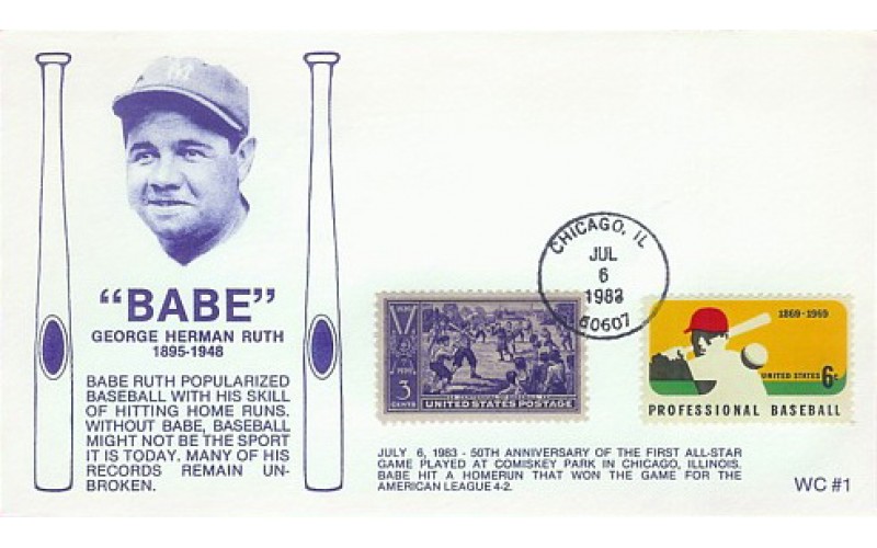 2046 WC101 Babe Ruth, FIRST, FDOI bhc *MISSING RUTH STAMP*