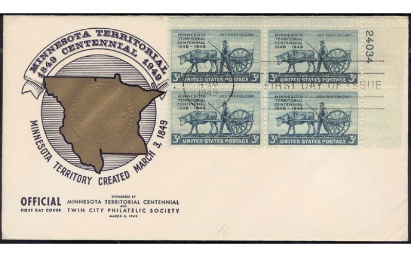 0981 M9 Minnesota Territorial Centennial & Twin City Philatelic Society; First