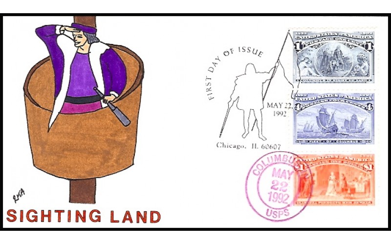 2625 RKA; hpd; 25 made; Combo 1c, 4c, and $1.00; Dual UO Columbus, IN on $1 stamp
