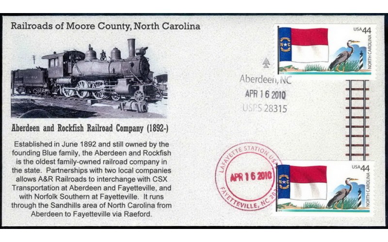 Established in June 1892 and still owned by the founding Blue family, the Aberdeen and Rockfish is the oldest family-owned railroad company in the state. Partnerships with two local companies allows A&R Railroads to interchange with CSX Transportation at Aberdeen and Fayetteville, and with Norfolk Southern at Fayetteville. It runs through the Sandhills area of North Carolina from Aberdeen to Fayetteville via Raeford.