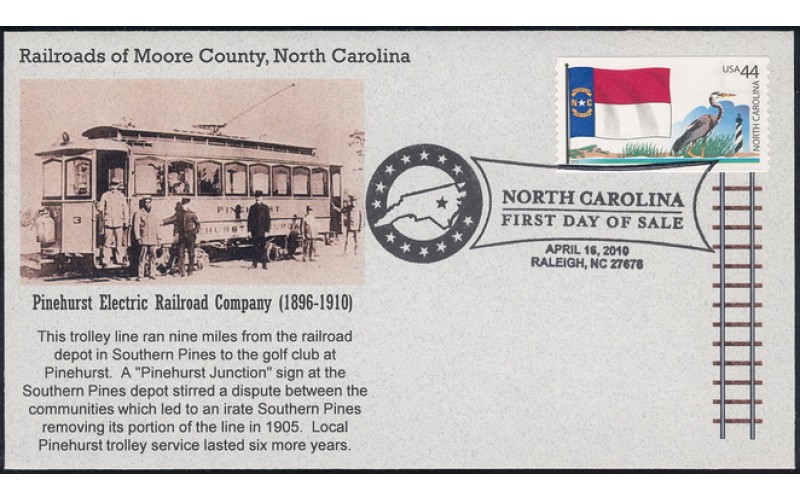 This trolley line ran nine miles from the railroad depot in Southern Pines to the golf club at Pinehurst. A "Pinehurst Junction" sign at the Southern Pines depot stirred a dispute between the communities which led to an irate Southern Pines removing its portion of the line in 1905. Local Pinehurst trolley service lasted six more years.